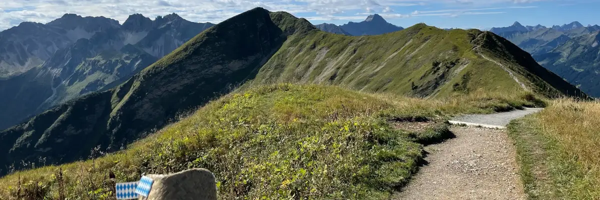 Gut gestärkt brachen wir rechtzeitig zur letzten Etappe auf – dem Höhenwanderweg zurück nach Riezlern. An der Mittelalpe kamen wir gerade noch rechtzeitig an, um das letzte Bier des Tages zu genießen und ein paar nette Bergwanderer zu treffen.